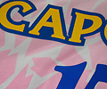 セレッソ大阪1年目であるJFL時代の前半のユニフォーム。後期にスポンサー、胸(カプコン)と背(日本ハム)が入れ替わる。JFL時代は袖にJリーグワッペンが着いてないはずがコレには着いている。サテライトで使用されたものか?。